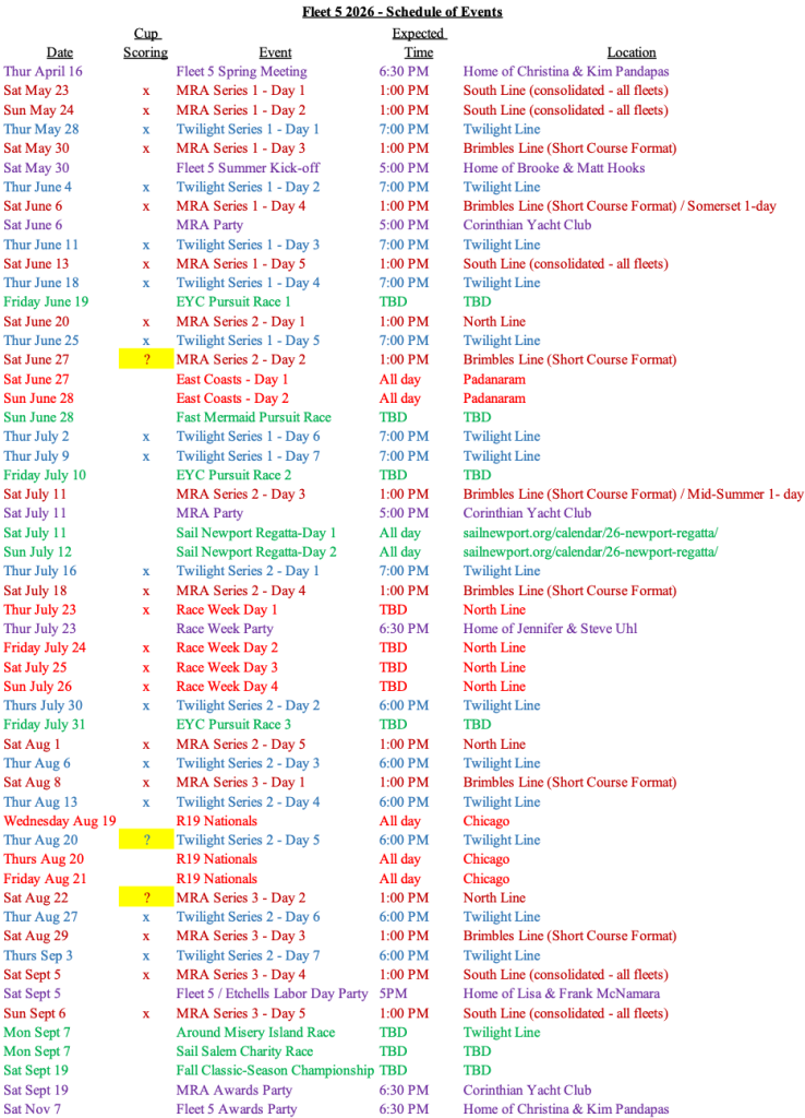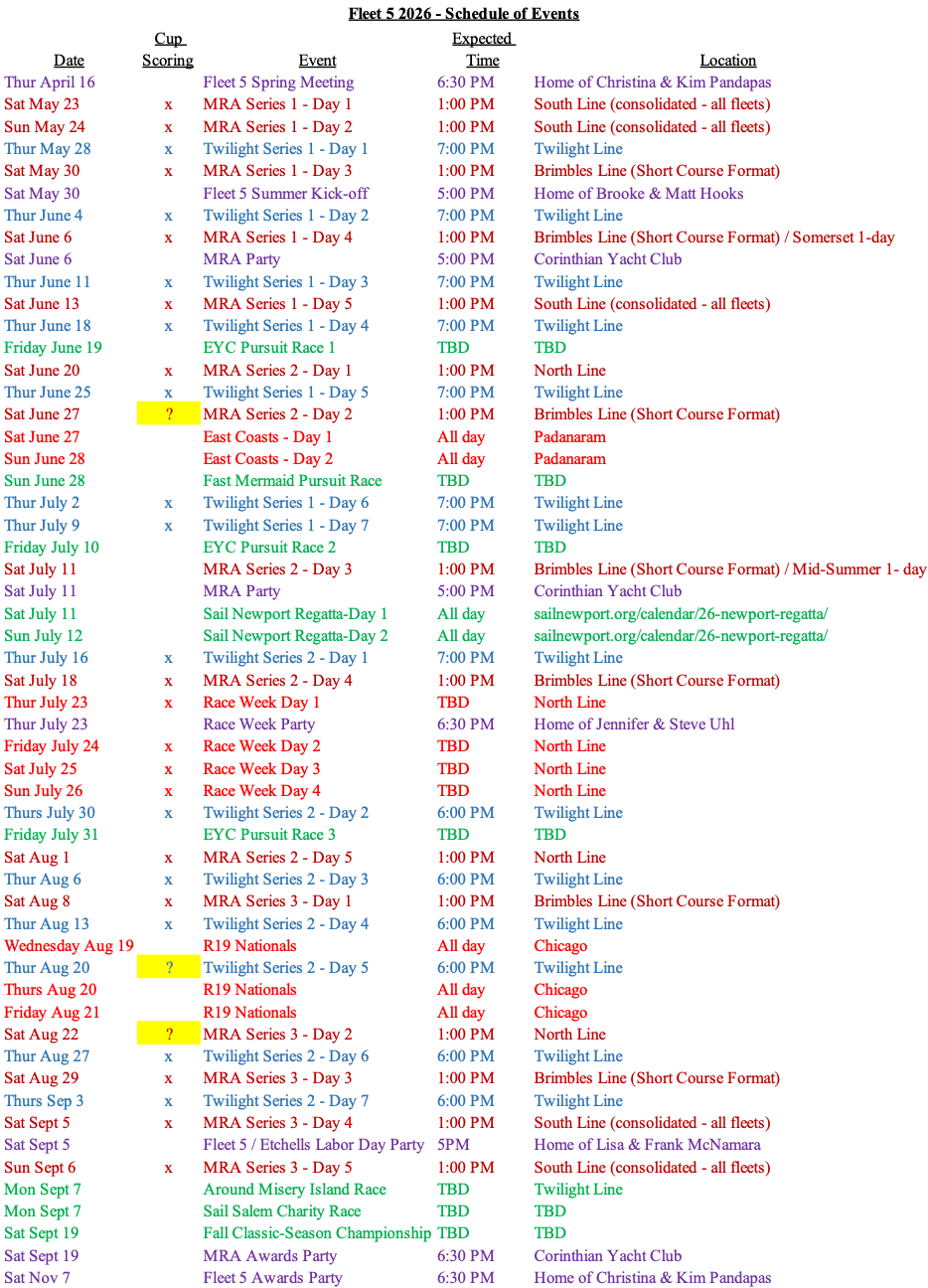 2026 Fleet 5 Schedule